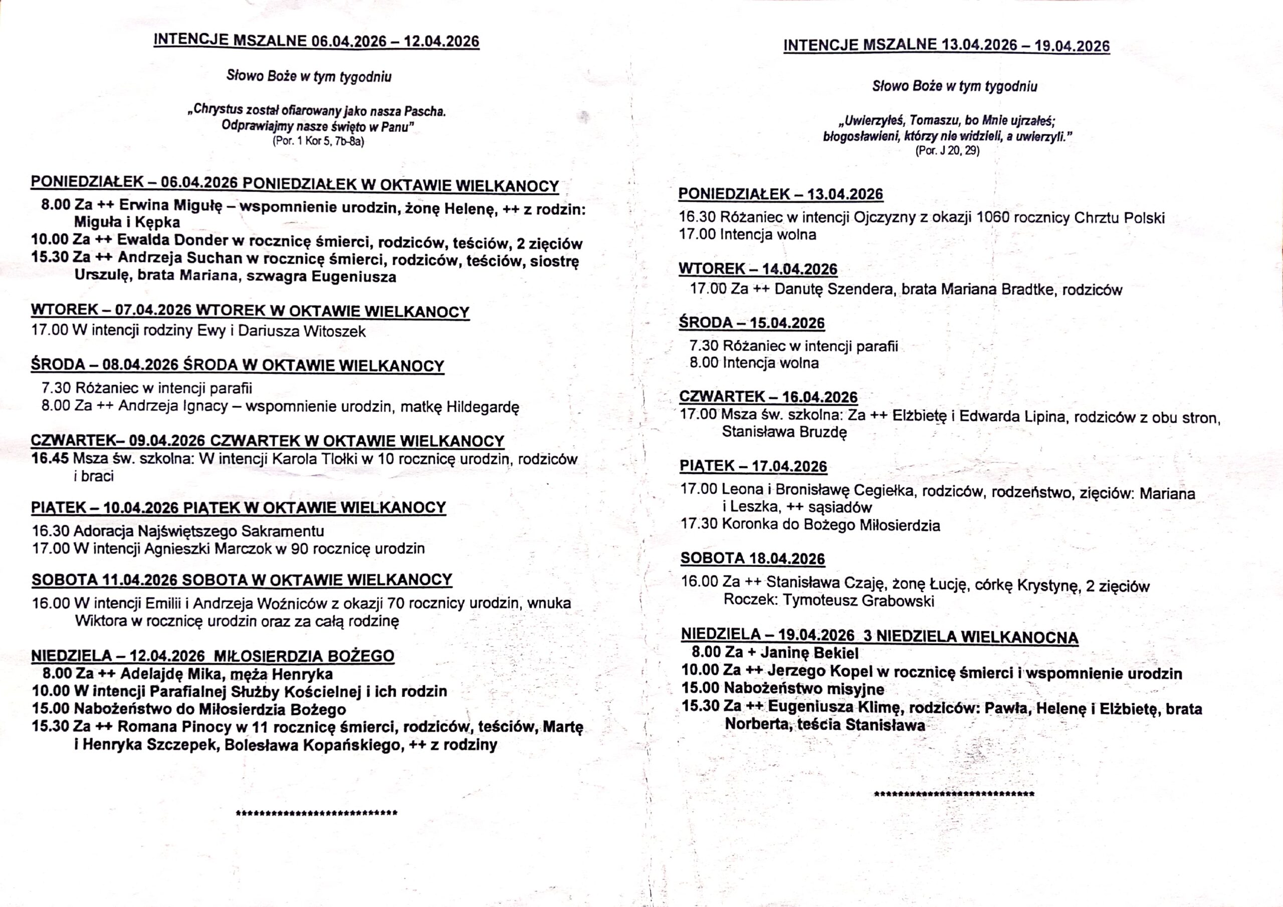 Msze św. w niedziele zaczynają się o godz: 8:00 10:00 15:30